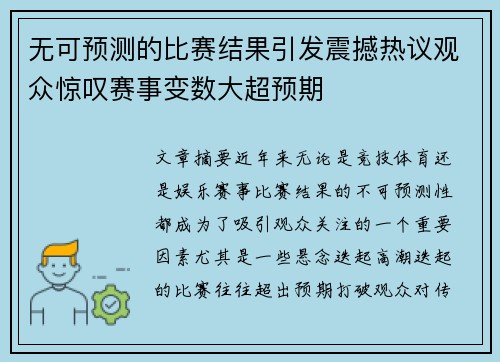无可预测的比赛结果引发震撼热议观众惊叹赛事变数大超预期